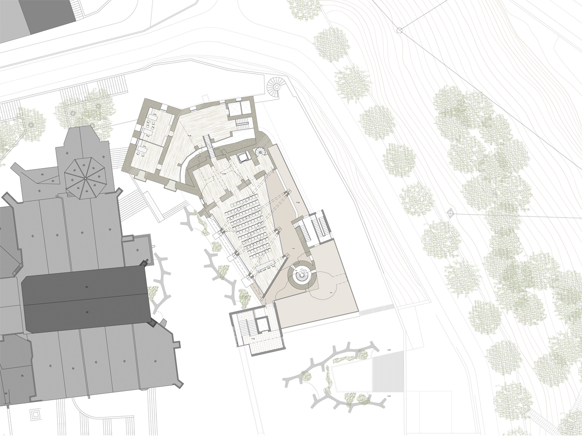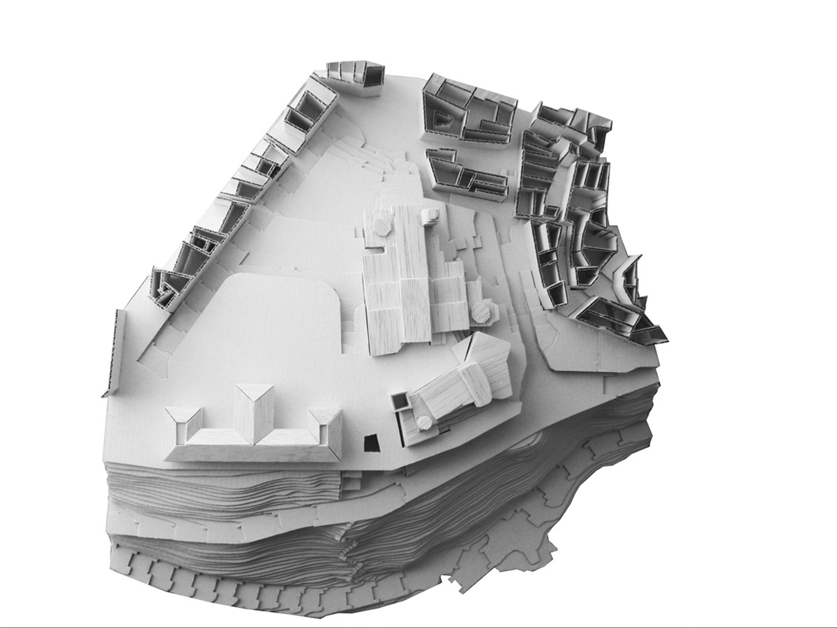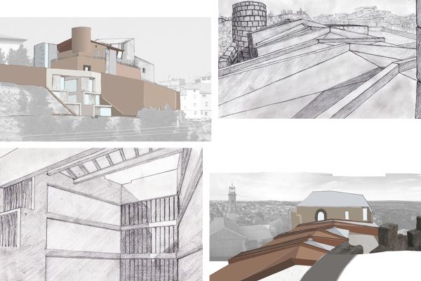 Propuesta para una biblioteca pública ubicada en las ruinas del Castillo del Compromiso de Caspe. El proyecto pretende recuperar las ruinas del castillo y crear un espacio semienterrado anexo, con vistas al antiguo cauce del río Guadalope y que sirva como espacio público de la misma.